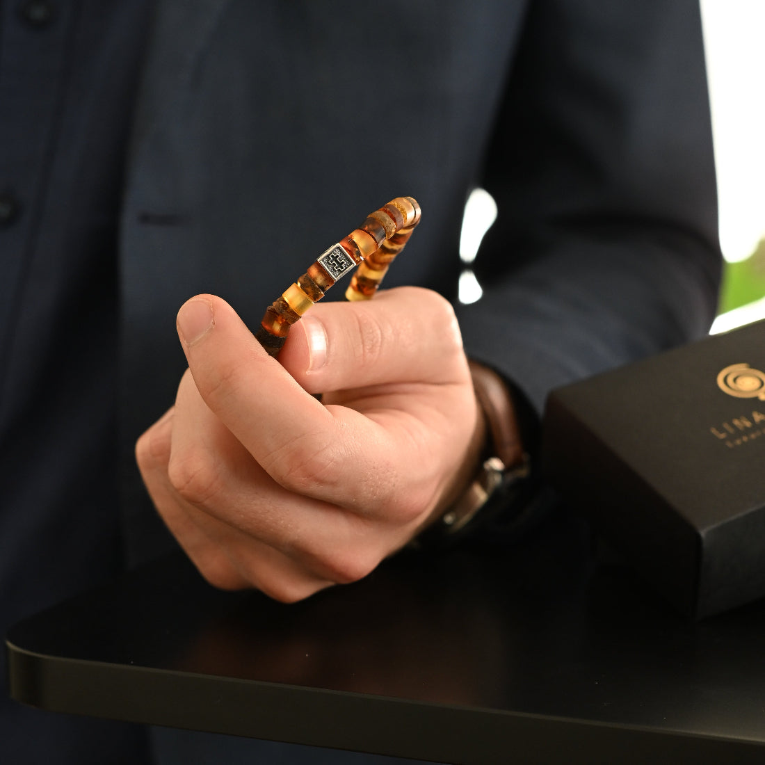 Every bracelet is unique - Amber pieces are natural, not polished, color, and bead size may slightly vary from presented in photos. Model (184 cm) in photo wears L size bracelet.