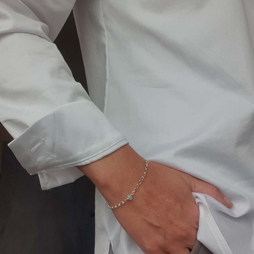 Aukštos kokybės natūralaus akvamarino ir sidabro 925 apyrankė „Drąsos akmuo“ - tai tarsi kvietimas ir priminimas, jog turėdami drąsos mes savo gyvenimui patys galime suteikti norimą formą ir kryptį.