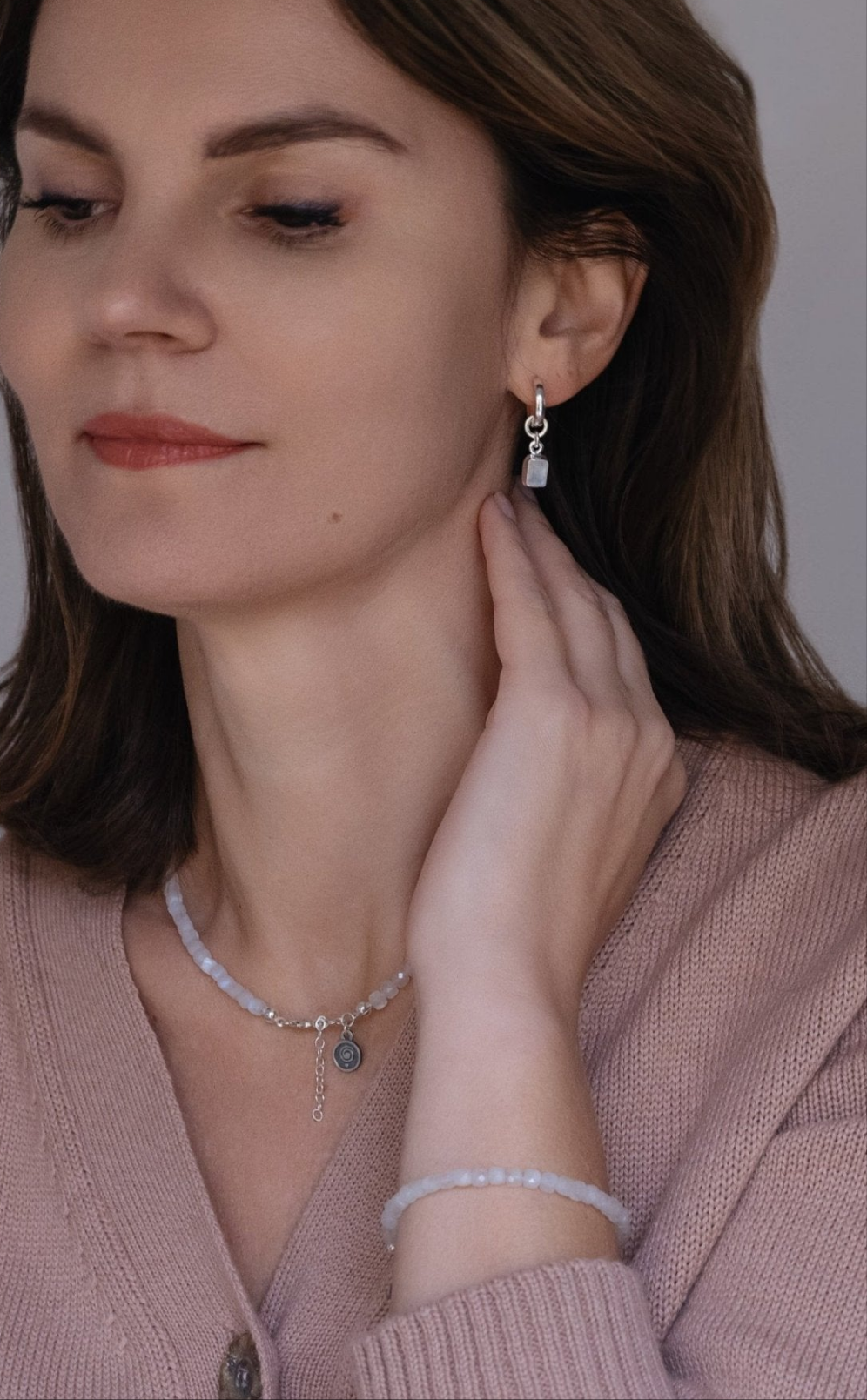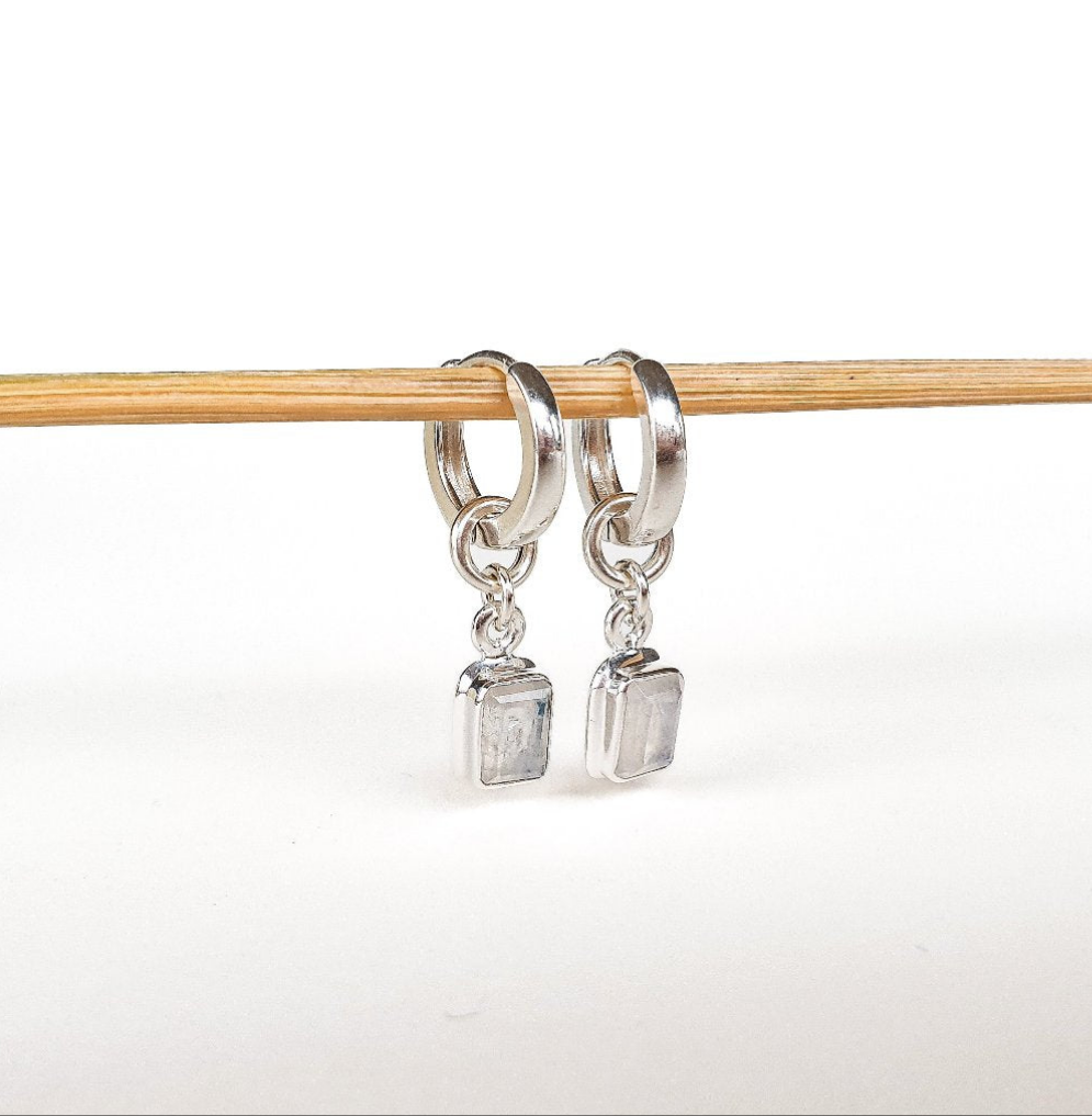 Mėnulio akmens dydis ~9 mm x ~6 mm, šią auskarų dalį galite nešioti atskirai kaip pakabuką.