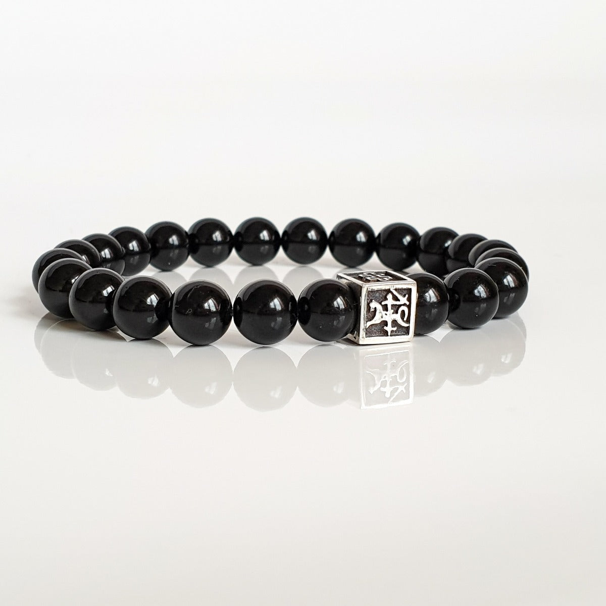 Natūralaus juodojo turmalino apyrankė vyrams. Akmenuko dydis 8,2 mm.