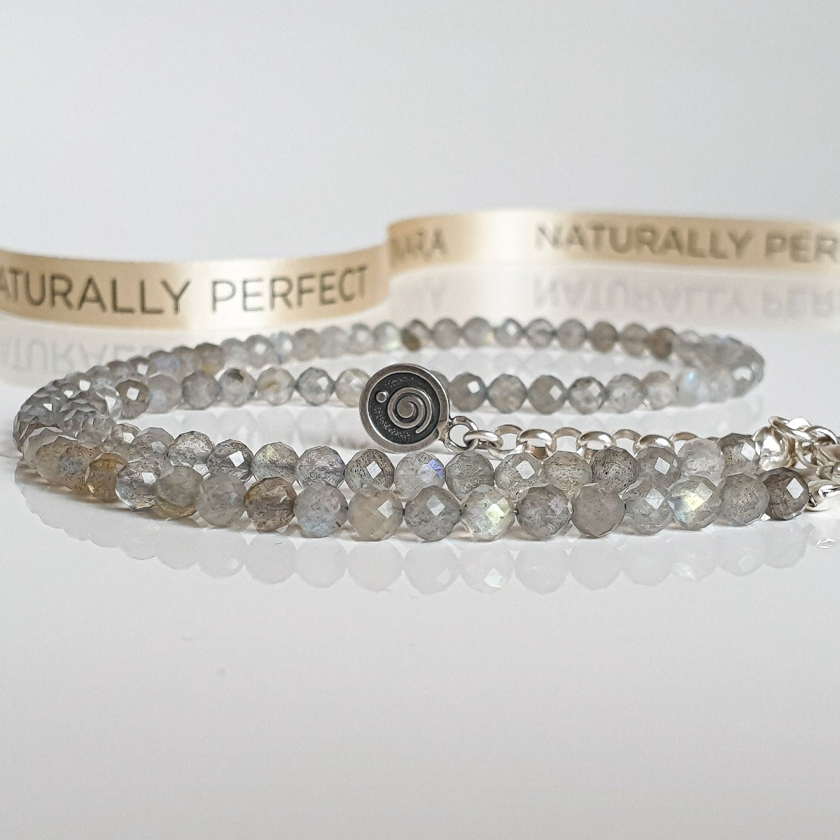 Vėrinio ir apyrankės rinkinys, kurį galite nešioti atskirai arba sujungti į ilgą vėrinį! Kolekcija „Petit Secret“ subtili, tačiau neliks nepastebėta, nes falcetuoti natūralaus labradorito karoliukai sužibės ir įlies savo energijos pačiose netikėčiausiose ir palankiausiose jums situacijose.