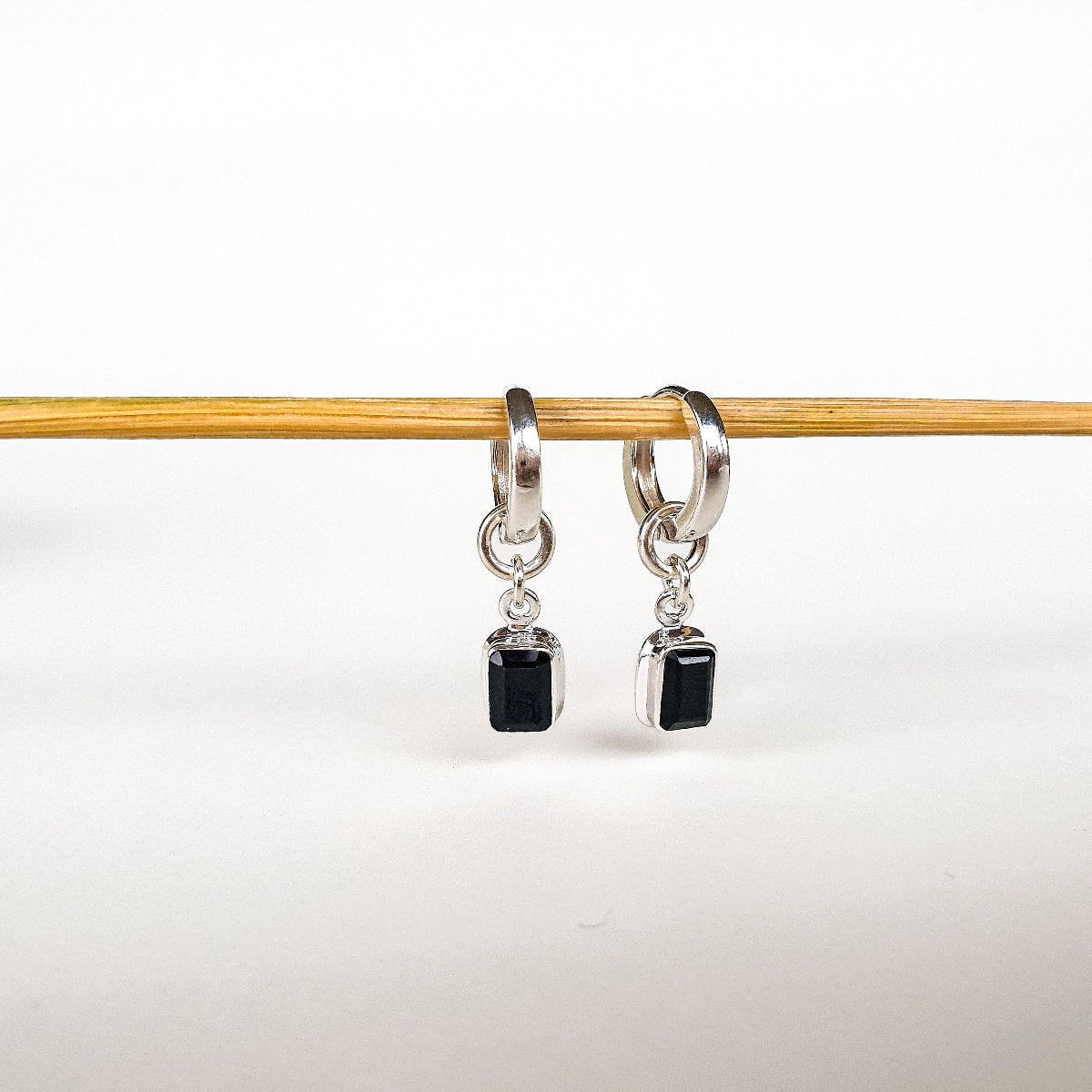 Natūralaus špinelio elegantiški sidabro 925 auskarai moterims “Augimas”. Aukštos kokybės juodojo špinelio dydis ~9 mm x ~6 mm, šią auskarų dalį galite nešioti atskirai kaip pakabuką.