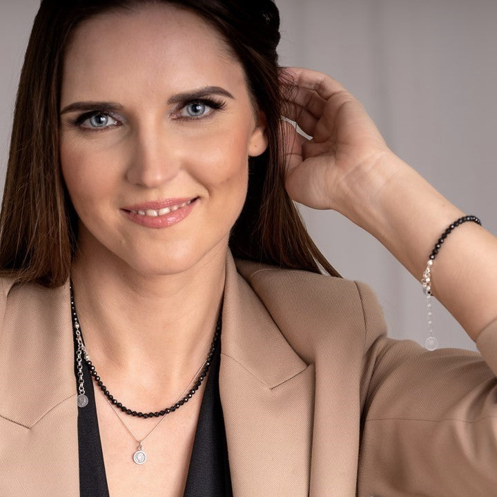 Sujunkite apyrankę su vėriniu ir nešiokite kaip ilgą, elegantišką 68 cm vėrinį.