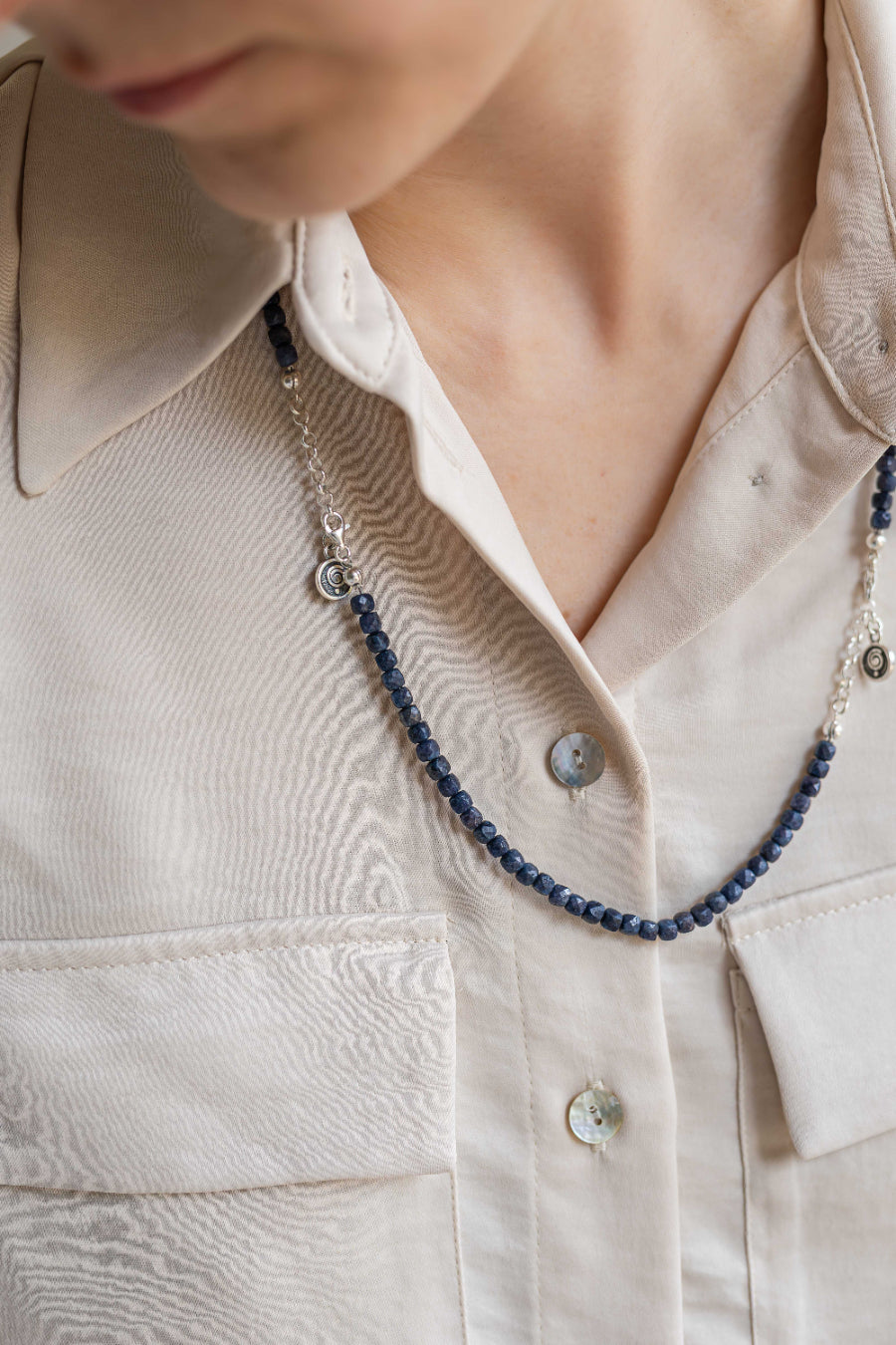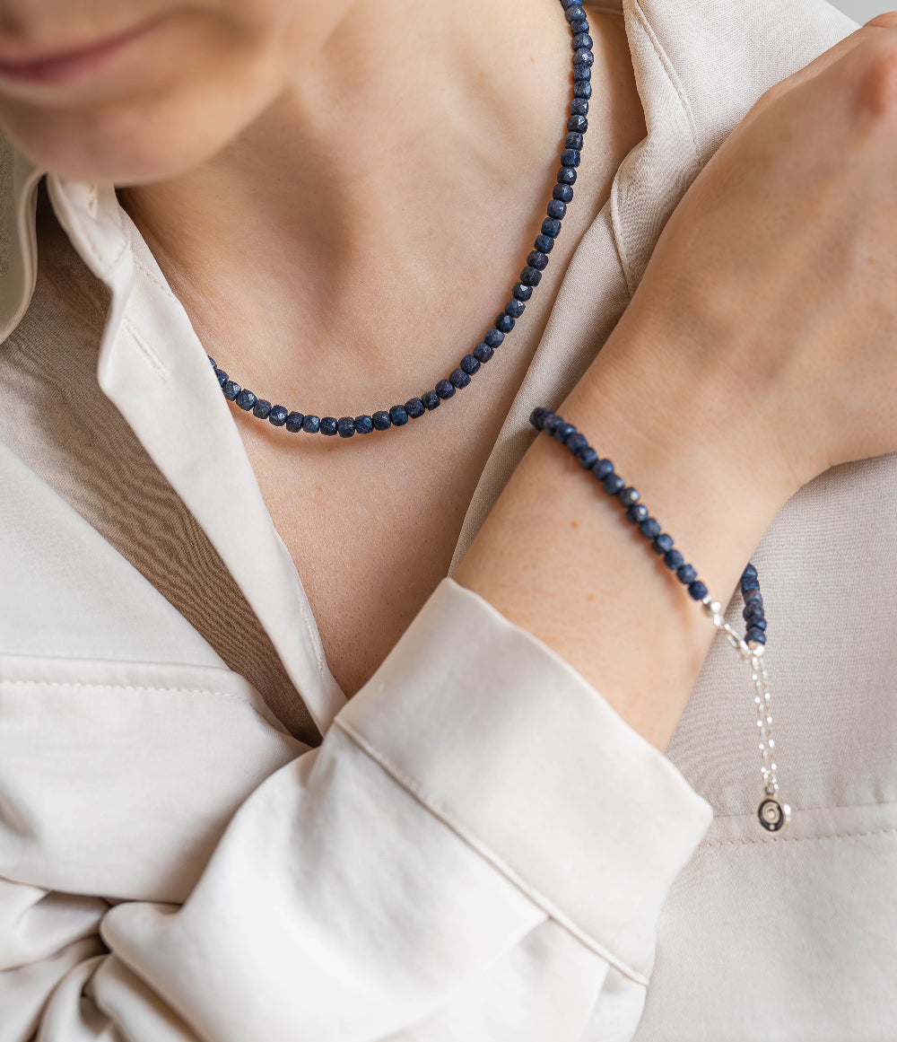 Kolje ir apyrankės rinkinys iš kolekcijos „Petit Secret“ su tamsiai mėlynu safyru.