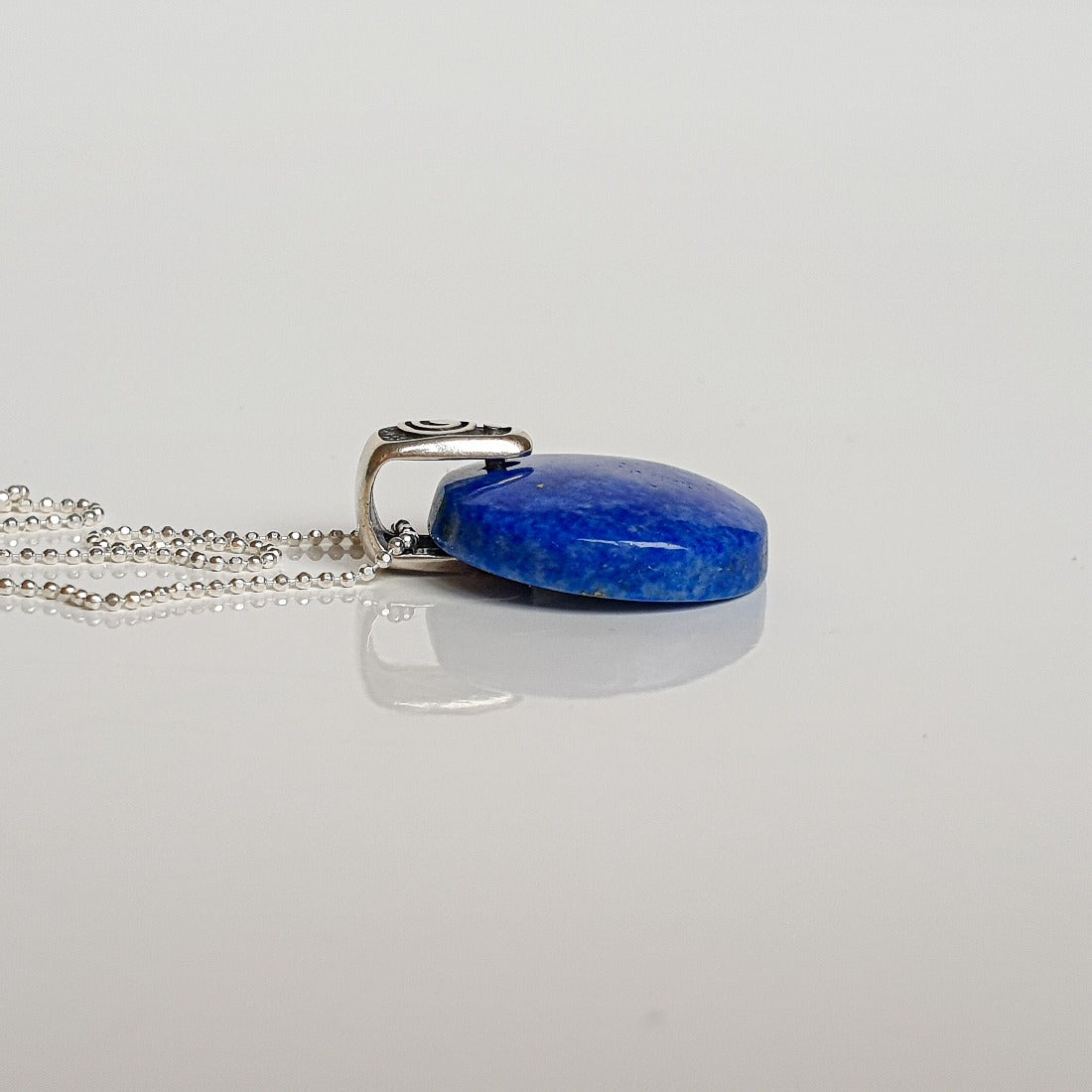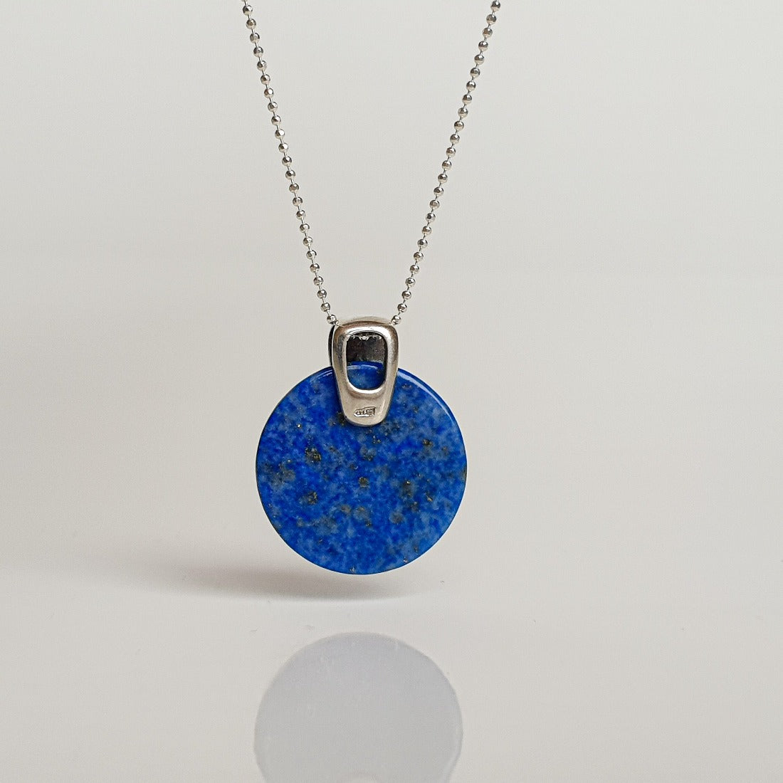 Pendant for women with ~20 mm round shape, hand-cut AAA+ grade Lazurute from Afghanistan attracts success in activities, business, self-realization, growth, personal goals, inner strength and wisdom.