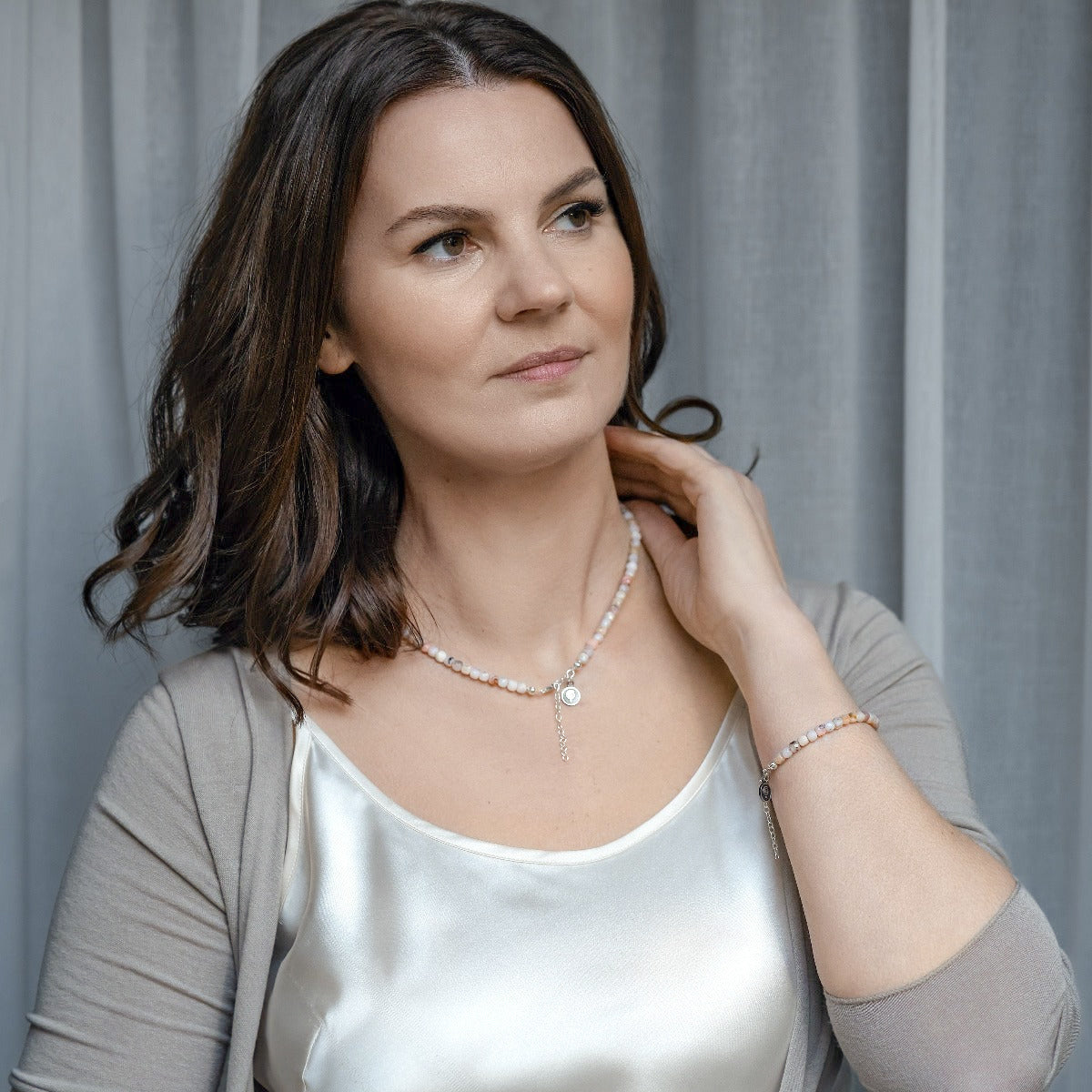 This bracelet for women with 4,5 mm natural Pink Opal beads calms emotions, harmonizes, helps reconnect to self-worth and soul’s peaceIts’ gentle effect soothes the soul, liberates from self-criticism and from the shackles of unlovingness. Love becomes brighter and sweeter with this stone, and you find yourself wanting to share your inner beauty and tenderness with others. As many ancient sages claim, “love for others begins with SELF LOVE”.