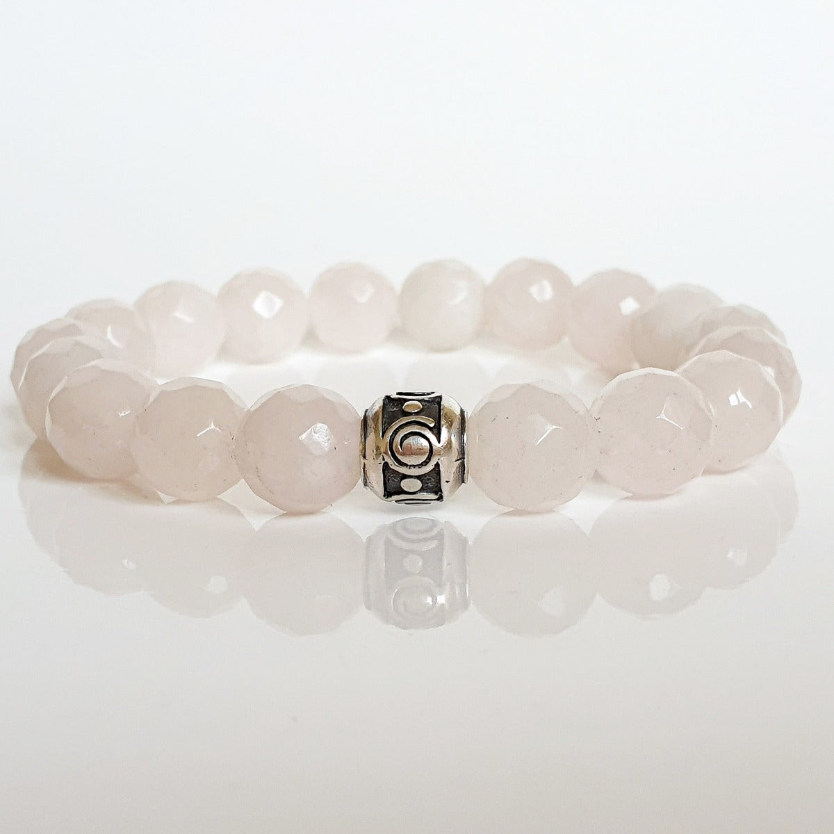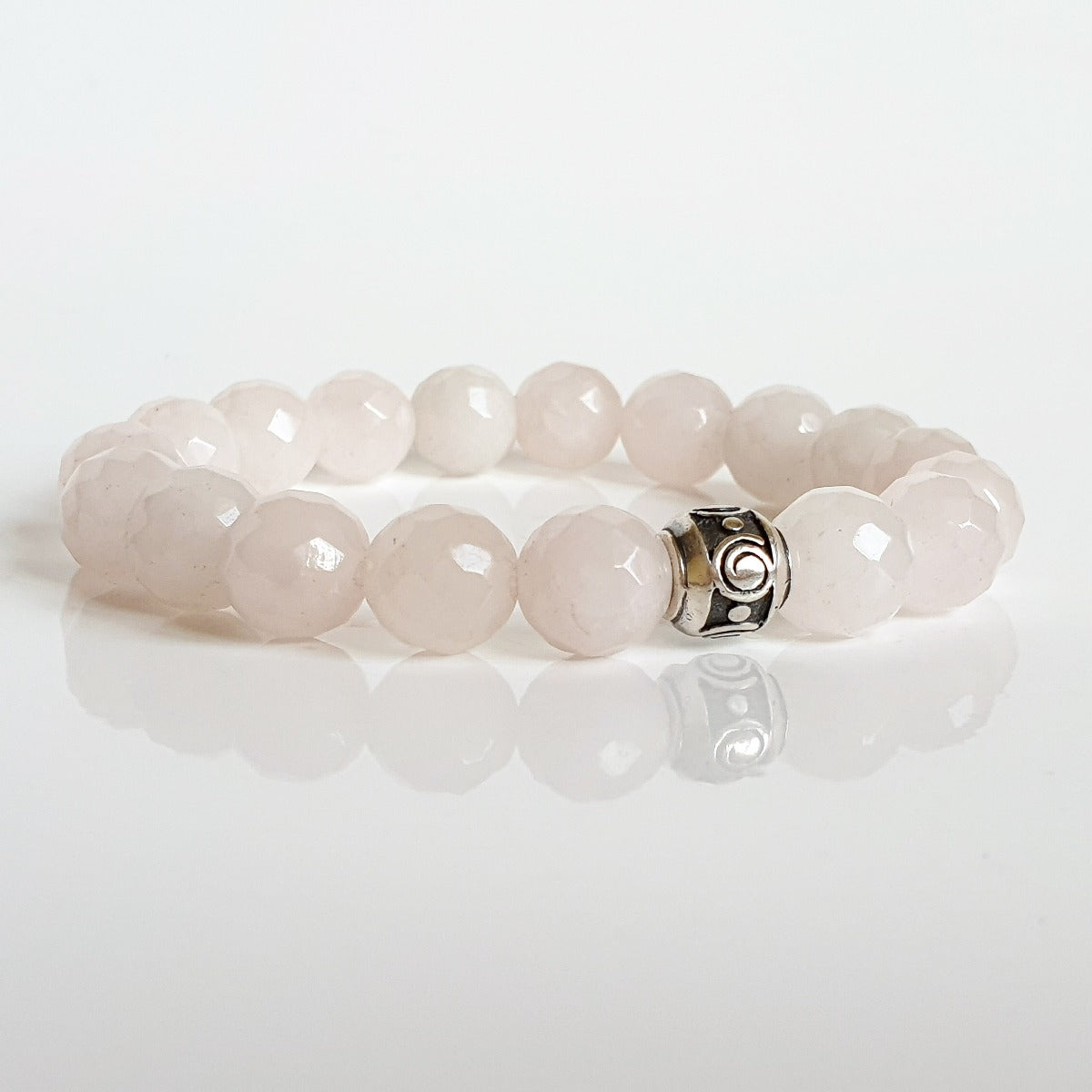 Bracelet for women with 10 mm natural faceted Pink quartz beads calms intense emotions, harmonizes, reconnects to self-worth and soul’s peaceIf this stone would speak, you’d hear this: "Accept yourself, enjoy yourself, celebrate all achievements, even the little ones, fall in love with yourself and celebrate life!"