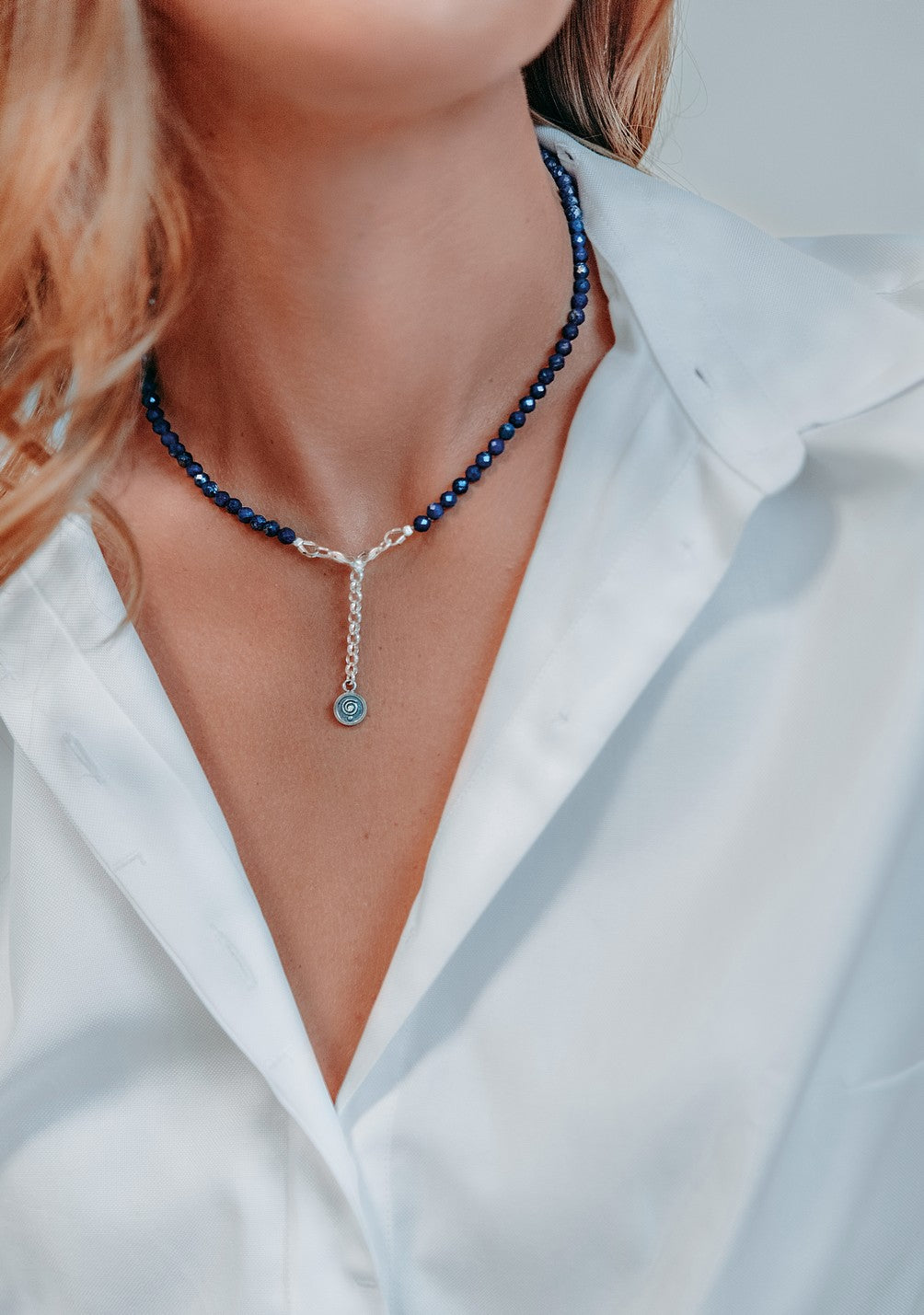 Petit Secret collection set of necklace and bracelet with silver 925 and natural lazurite - stone of wisdom, truth and glory.
