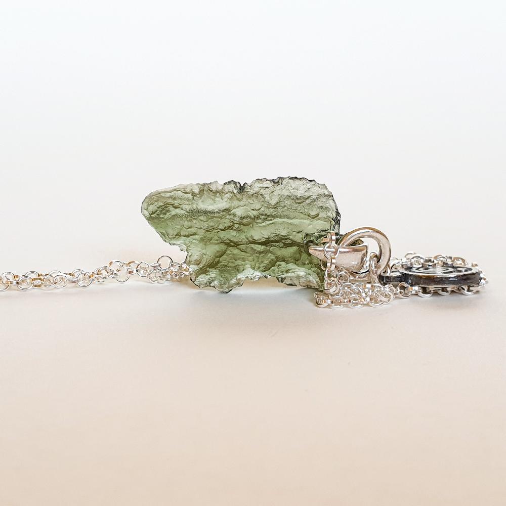 Carrying or wearing Moldavite in jewelry allows its energies to remain in one's vibrational field throughout the day strengthening its effects and increasing the incidents of beneficial synchronicities in daily life. Because of Moldavite's intense vibration, some may experience light-headedness or a lack of grounding and may need to acclimate themselves gradually to wearing it.